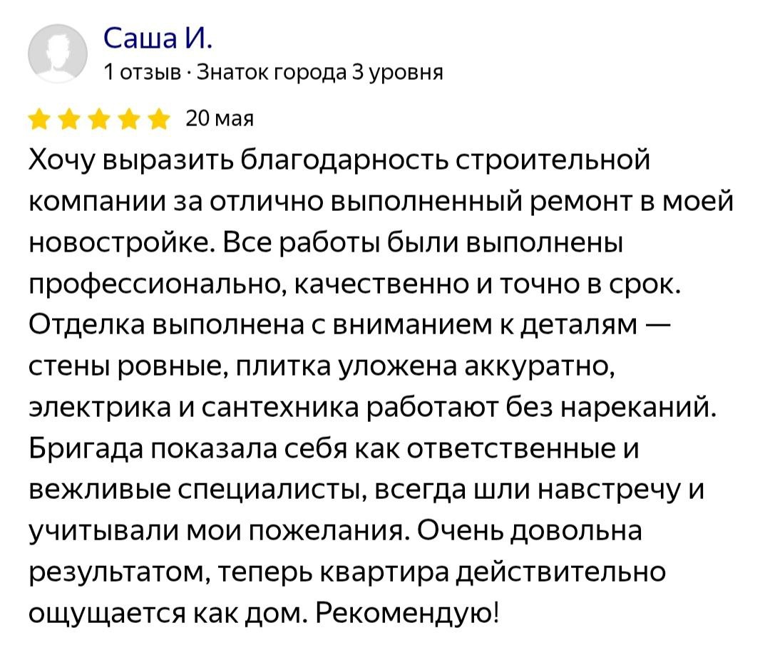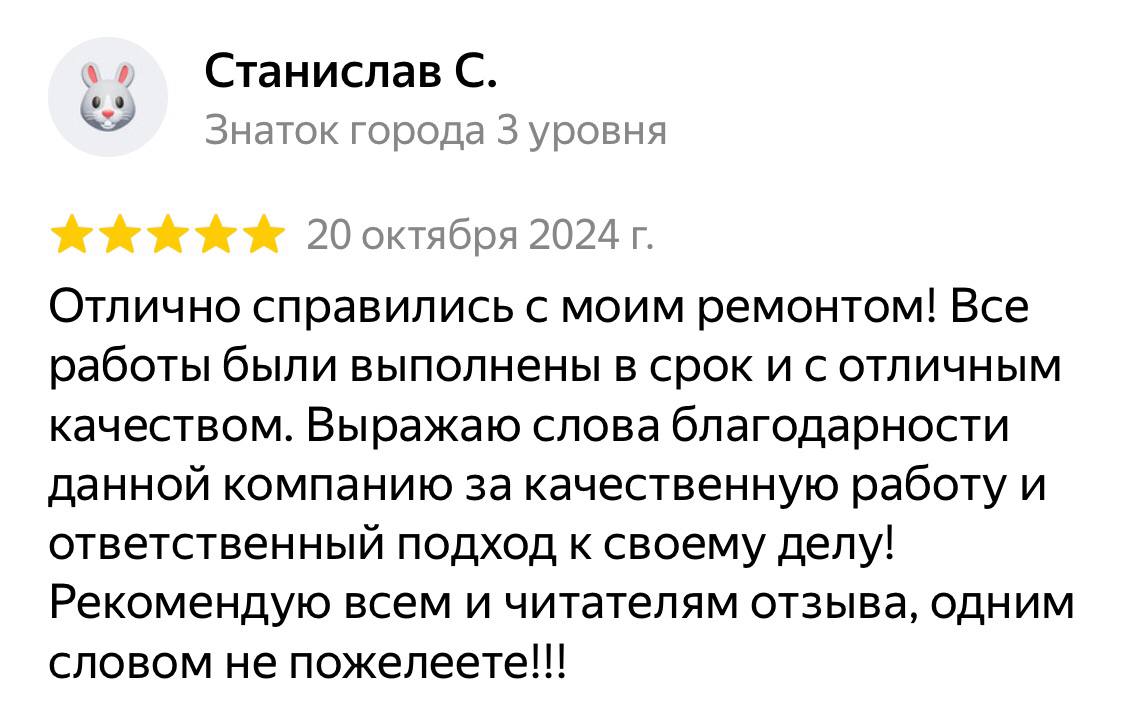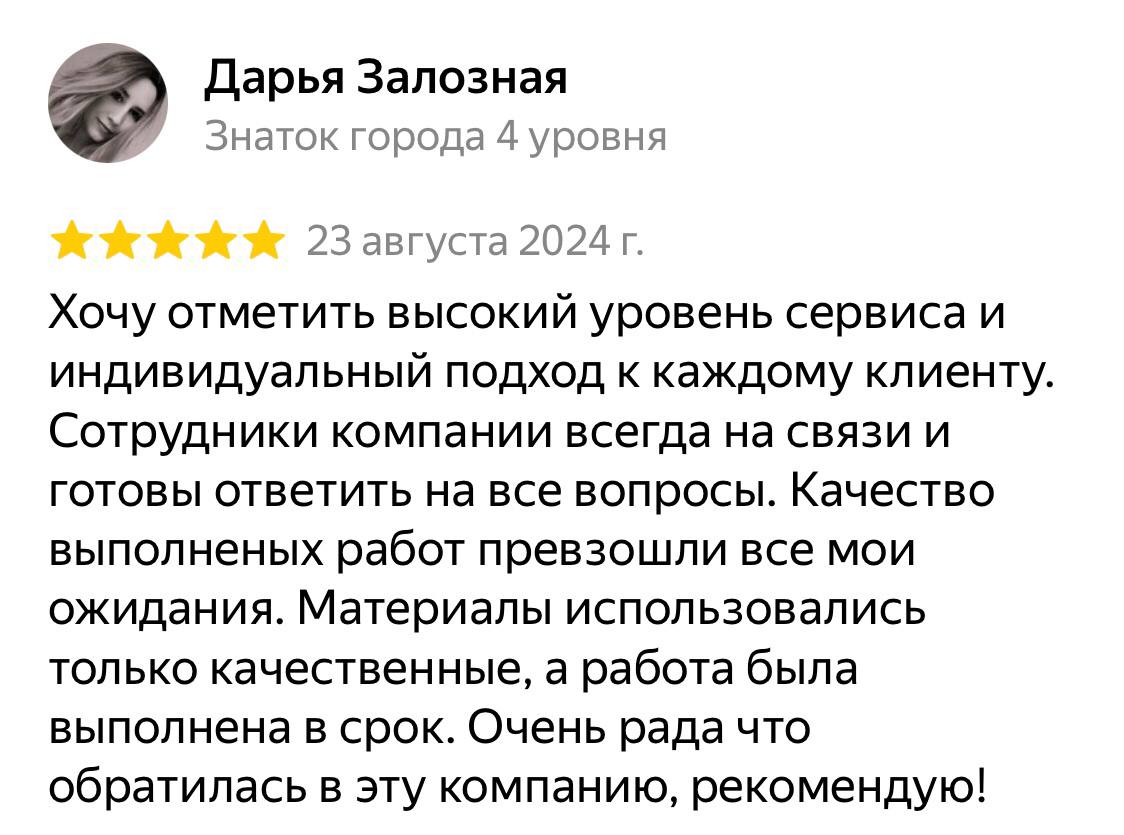 Исключительное качество работ